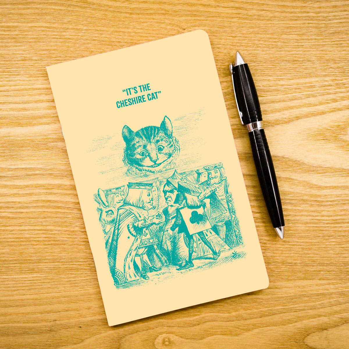 Ce carnet met en avant le célèbre chat du Cheshire d’Alice au pays des merveilles.