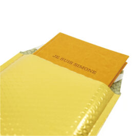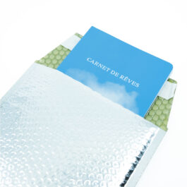 Vous trouverez une enveloppe en vélin ivoire pour accompagner vos cartes postales, ainsi que des enveloppes bulles métallisées or et argent pour envoyer de petits colis par la poste ou comme belles pochettes cadeaux.